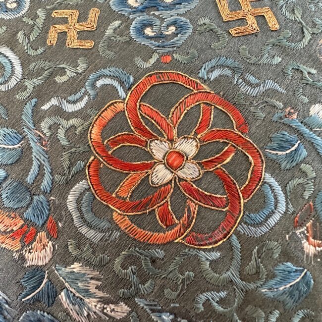 Textile conservation is a solitary profession, characterized by hours of concentration, patience, eye-hand coordination, good light, keen eyes, and particular tools; it is in many ways inherently contemplative. With our heads down, we navigate creases, wrinkles, lines and contours, valleys and vales, clusters and constellations of threads and fibers. Our studio looks out on a verdant garden and lively bird feeder and bath. We call this our ‘bird TV’.