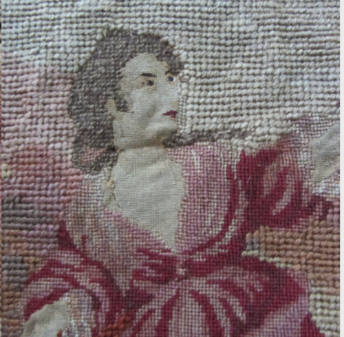 Damaged antique silk embroidery of Mary
