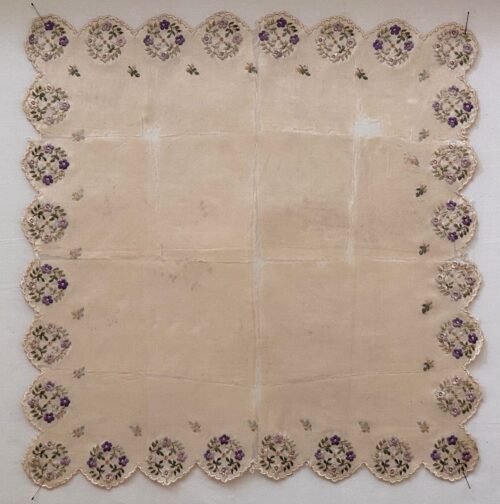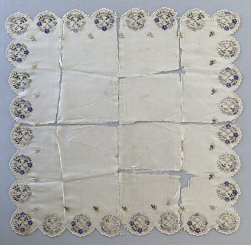 Aged antique silk embroideryRefurbished antique embroidery