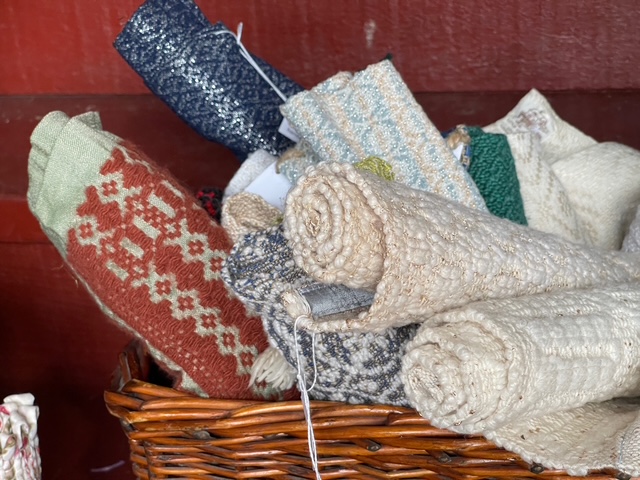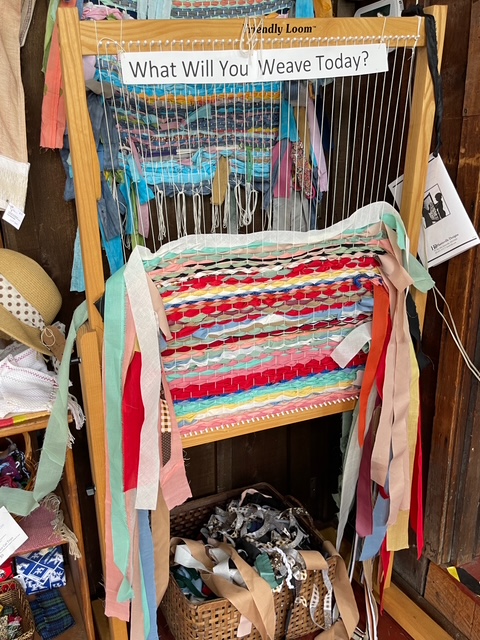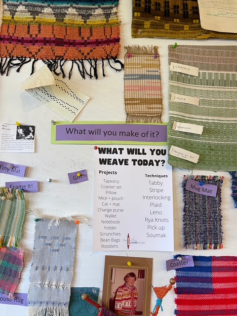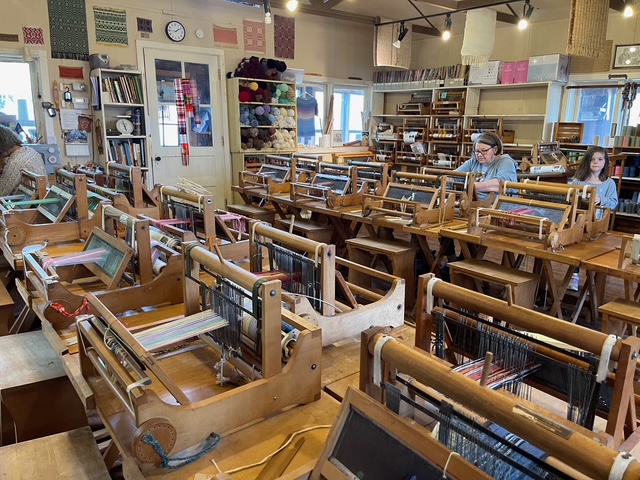 The weaving cottage hums with the sound of heddles and beaters, Little Looms warped and ready for anyone of any age to sit and weave.