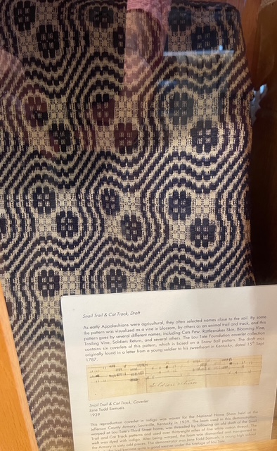 The epicenter of this profoundly historical spot is LOU TATE. (1906-1979) A graduate of Berea College (where I worked to preserve the textile collections and teach students conservation) was inspired by an elderly weaver who gifted her five generations of weaving patterns – a veritable treasure trove of weaving ‘maps’. Lou Tate began traveling through Kentucky on horseback, collecting 18th and 19th c. patterns or ‘drafts’.