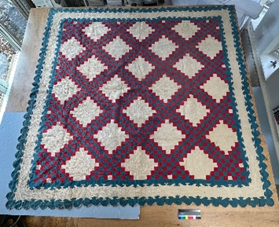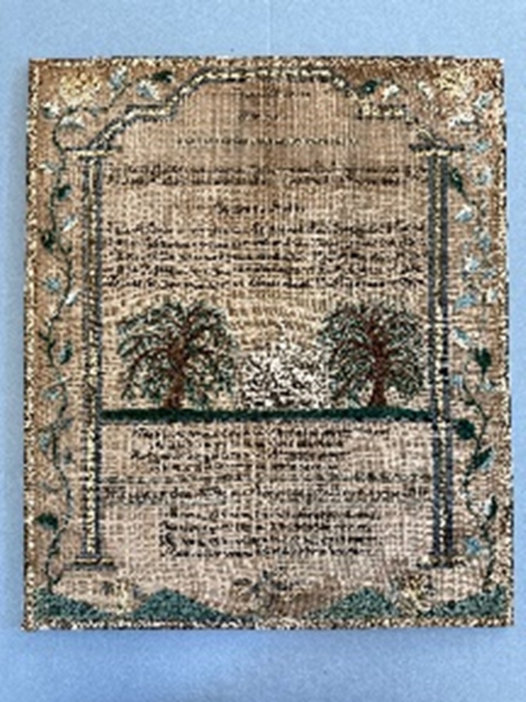 Historical textiles include samplers, quilts, coverlets, lace, linens, embroideries, wall hangings, tapestries, printed textiles, flat weaves, household textiles, bell pulls, and needlepoint.